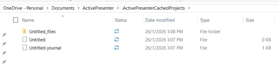 Bước 1: Tìm nơi lưu trữ file tạm, cache của Active presenter và copy lưu dữ liệu ở ổ cứng khác không lưu ở nơi file tạm.