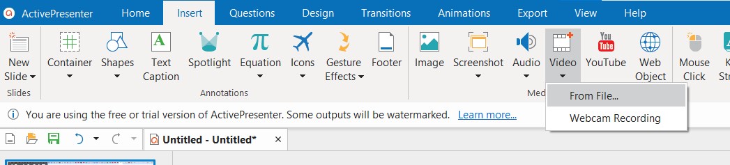 Sau khi có projec ta tiến hành import các thành phần video và audio voice vào dự án như hình bằng cách mở menu Insert tìm đến biểu tượng video